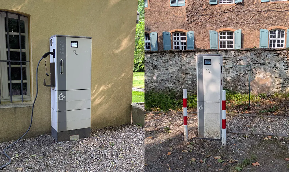 The two charging stations each have two charging points with 11 kW and 22 kW. Without prior registration, electricity can be paid for with any German EC card via Giro-e.